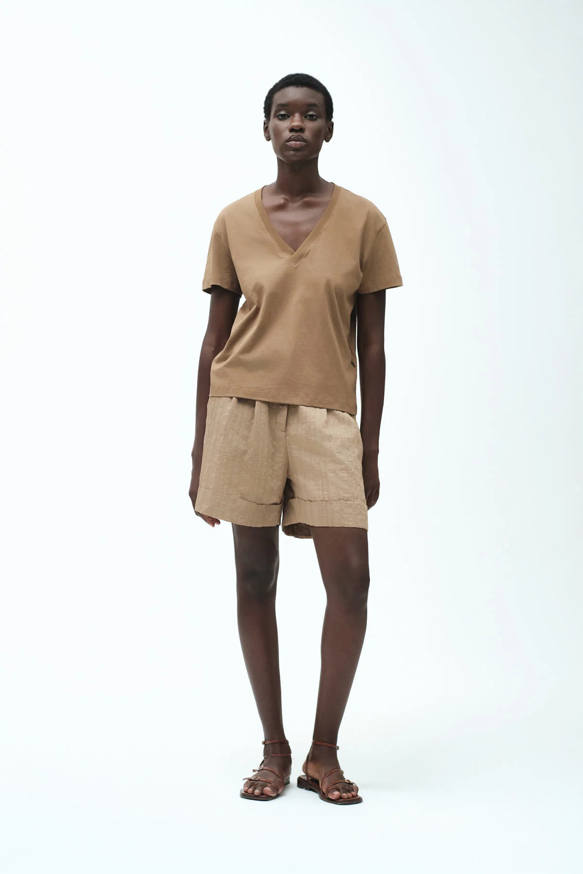 T-SHIRT IN COTONE SCOLLO V CON PATCH IN GOMMA – FD256