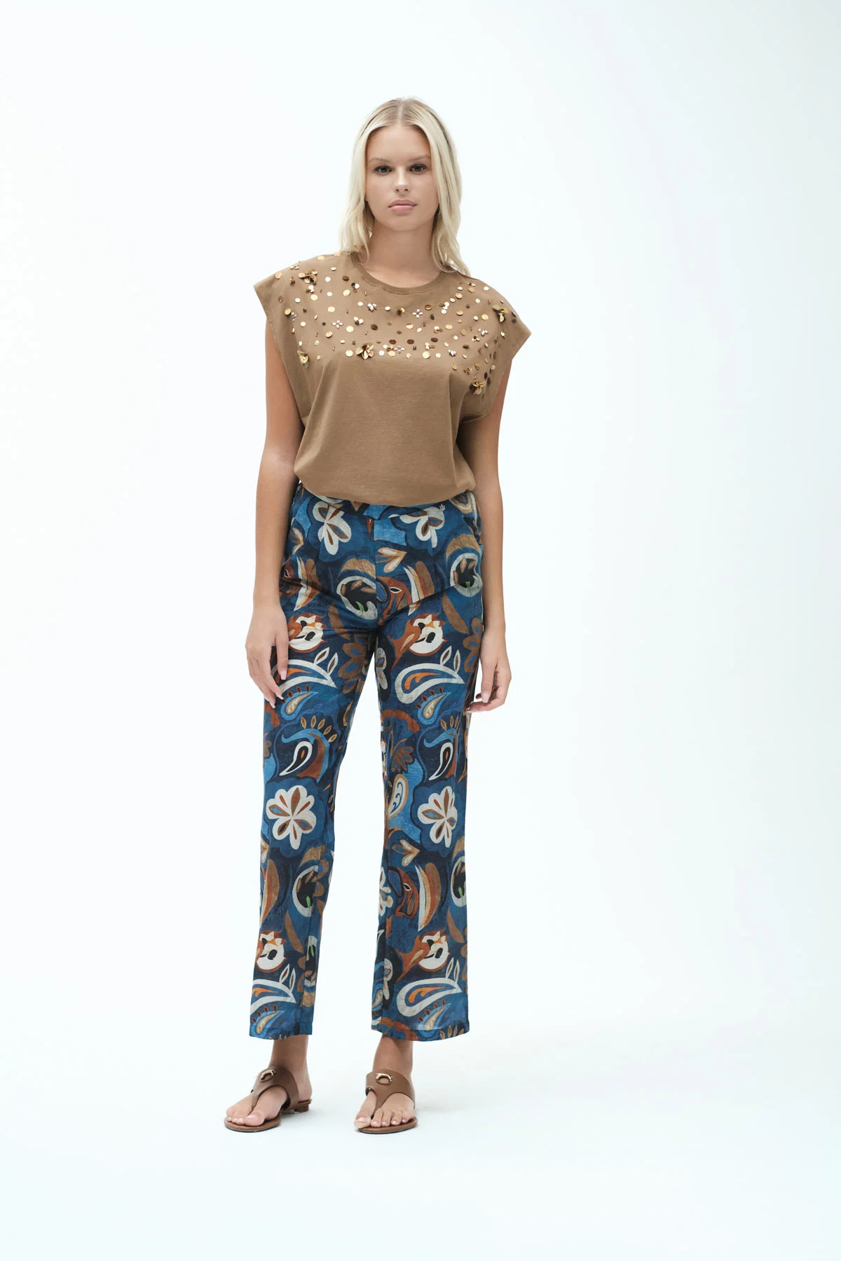 T-SHIRT IN COTONE SMANICATA APPLIC FIORI – FD245